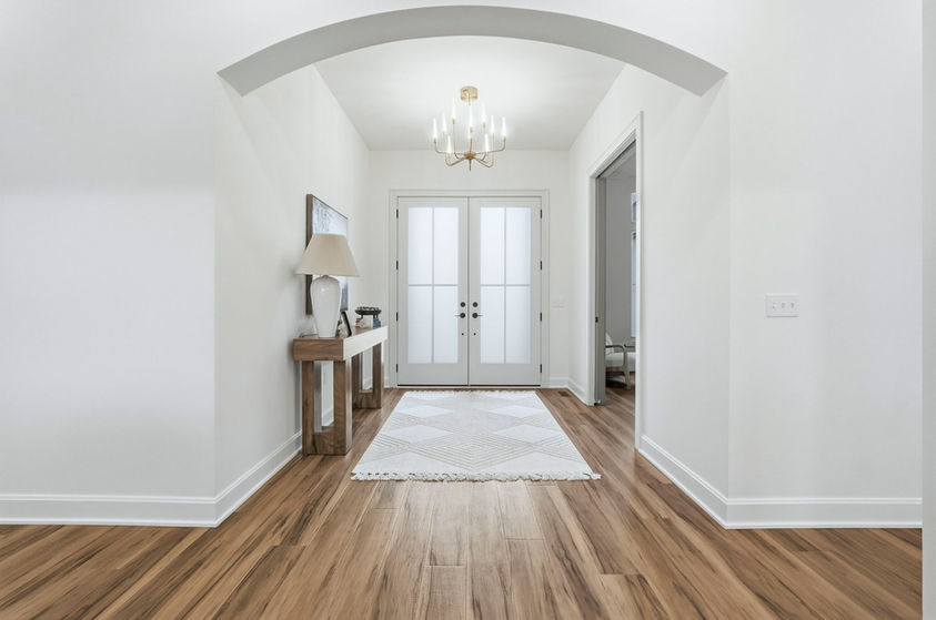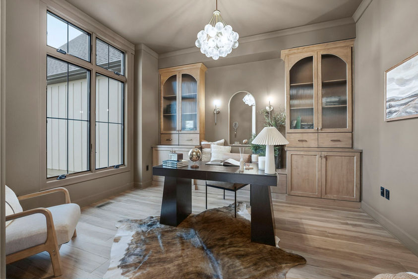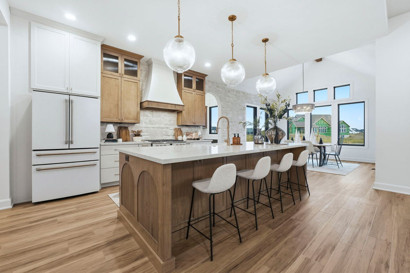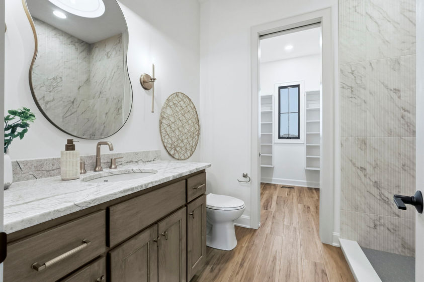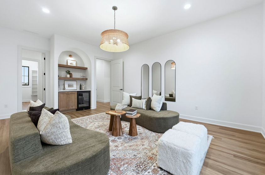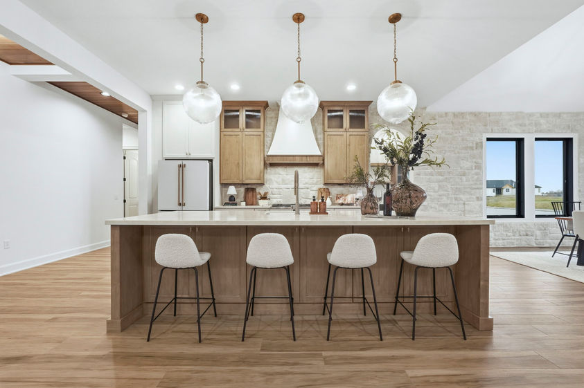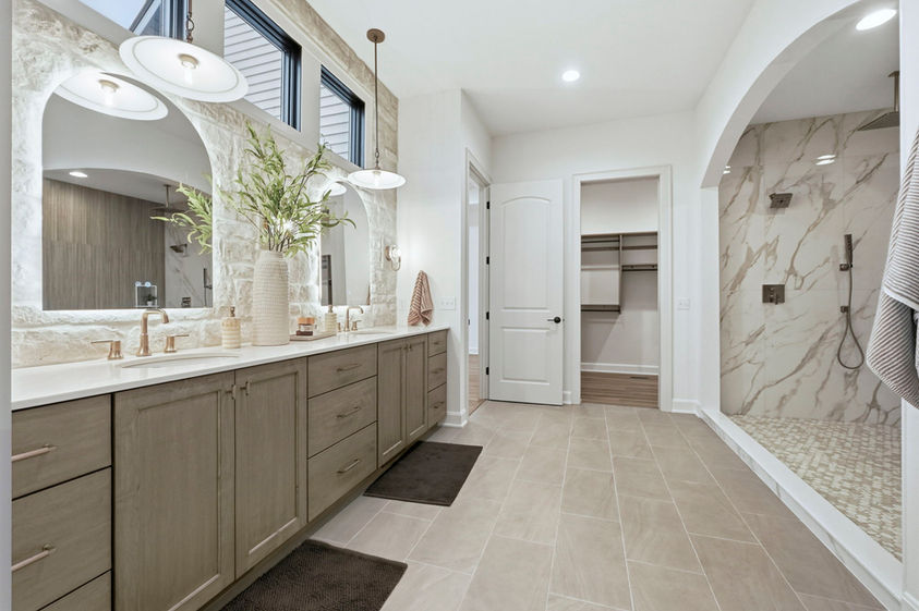 This jaw-dropping home features stunning long pond views from every angle. Natural daylight rolls in and accentuates the fine details everywhere such as the stone and wood accents, warm under cabinet lighting and 10 ft. ceilings with 8 ft. doorways. Enjoy ample walk-up attic storage, zoned heating and air, and a primary suite that will be your sanctuary. Frameless glass doors will be added to the tile showers for that finishing touch of beauty. All bedrooms feature an ensuite bathroom and large walk- in closets. The secondary bedroom created as a flex space could easily double as another living space, game room or a next level guest suite. Enjoy the oversized outdoor patio with a cozy fireplace for the quiet moments or entertaining at it's finest!